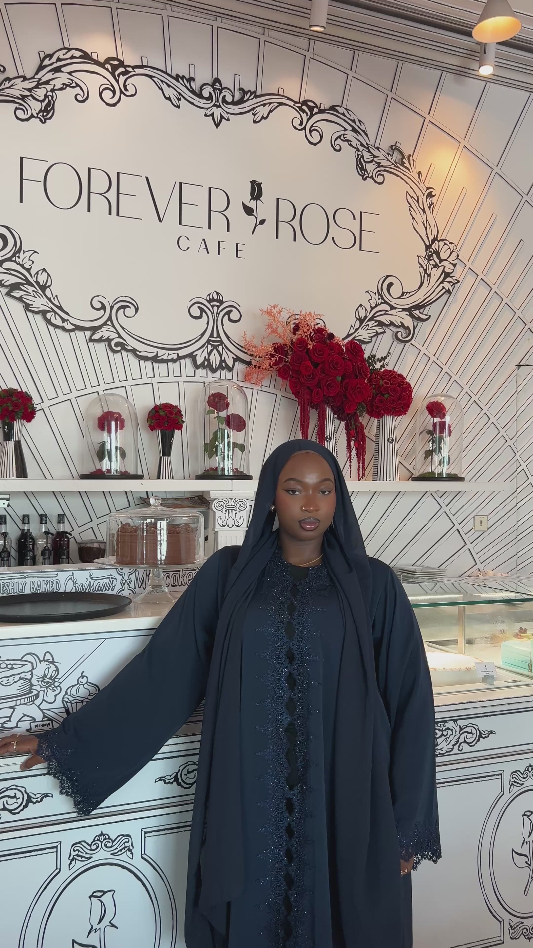 Elevate your wardrobe with our dark blue Lace Abaya, designed for timeless luxury and effortless elegance. Crafted from premium Korean nida fabric, this piece offers a soft and lightweight drape with a refined finish. The abaya is detailed with intricate lace embroidery that adds a graceful and feminine touch, perfect for both special occasions and elevated everyday wear. Comes with a generously sized matching hijab, allowing for versatile and elegant styling.