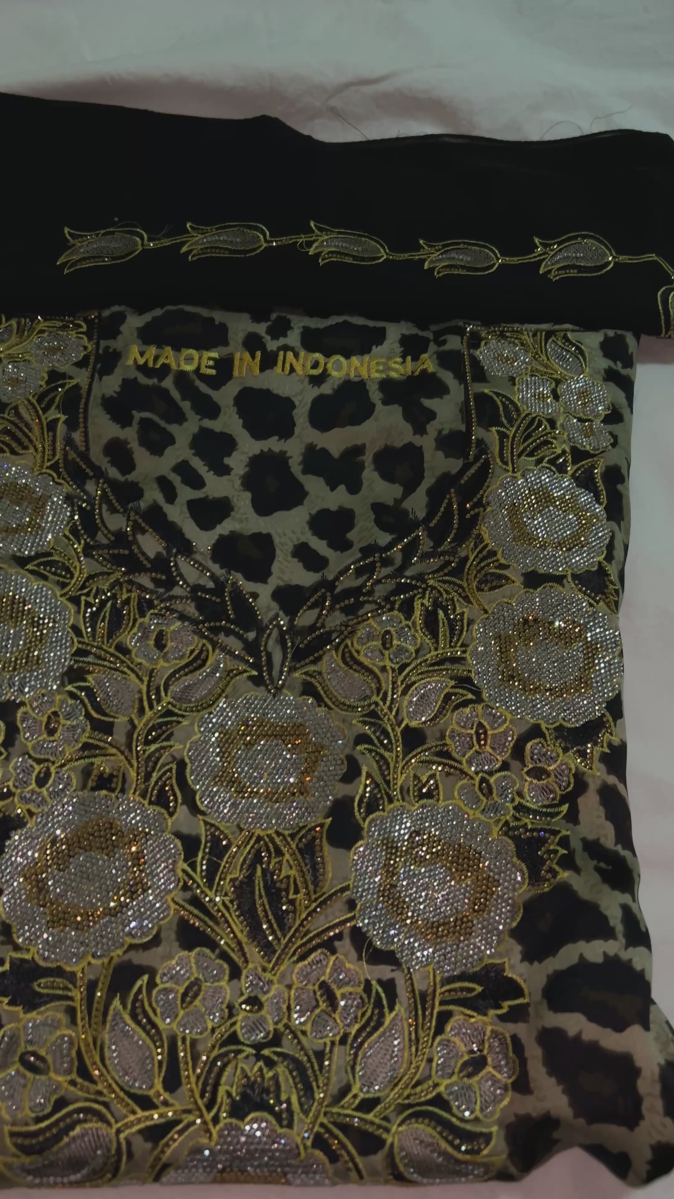 Step into bold sophistication with this black-and-gold leopard print mukhawar, crafted from a high quality silk. Its striking design is paired with a matching hijab, perfect for making a statement at any occasion. Ideal for elevating both casual and formal ensembles.