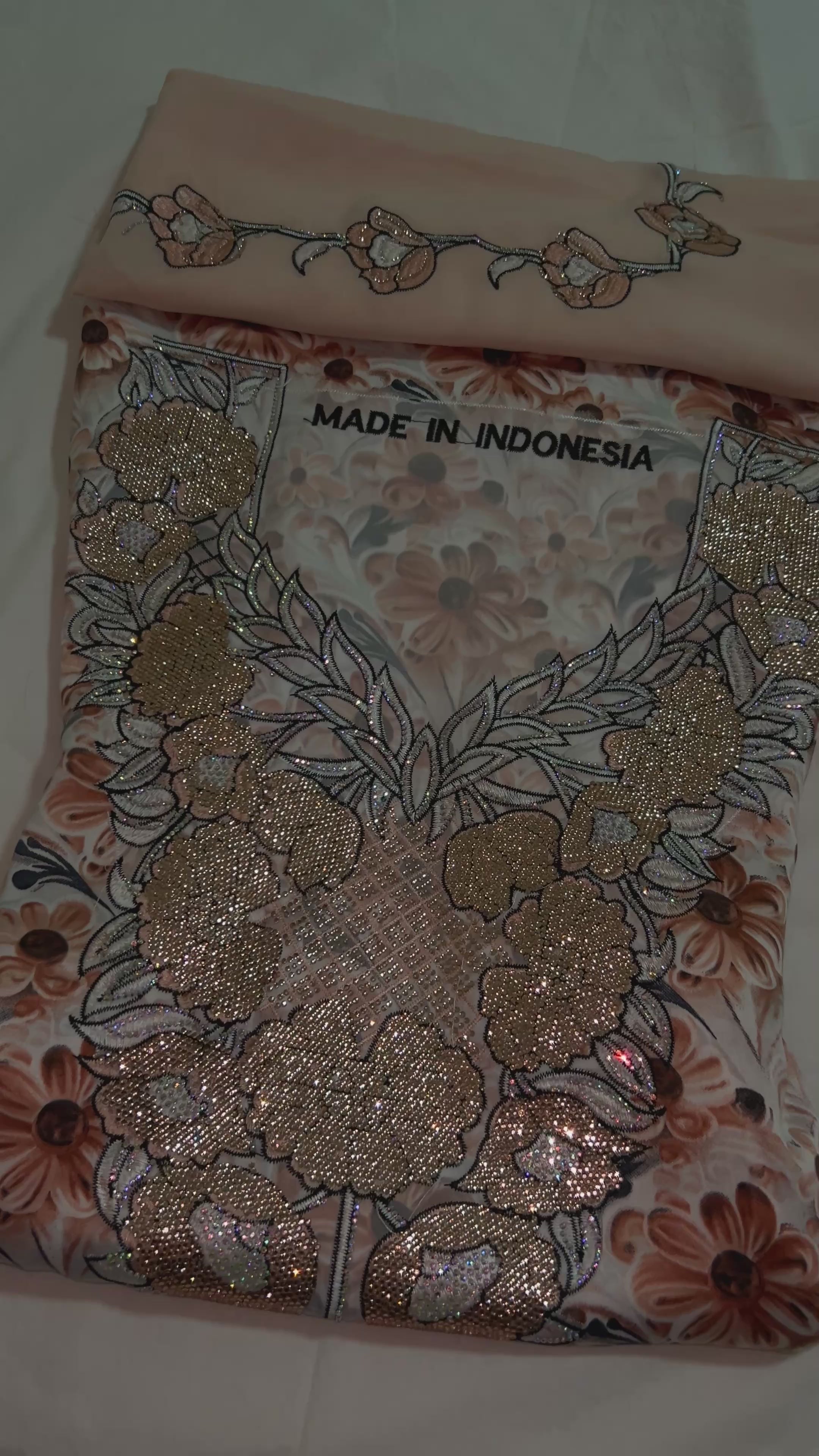 Soft beige florals delicately woven into premium silk, creating a look of quiet luxury and timeless elegance. Comes with a matching hijab, designed to elevate your style with effortless sophistication and refined charm.